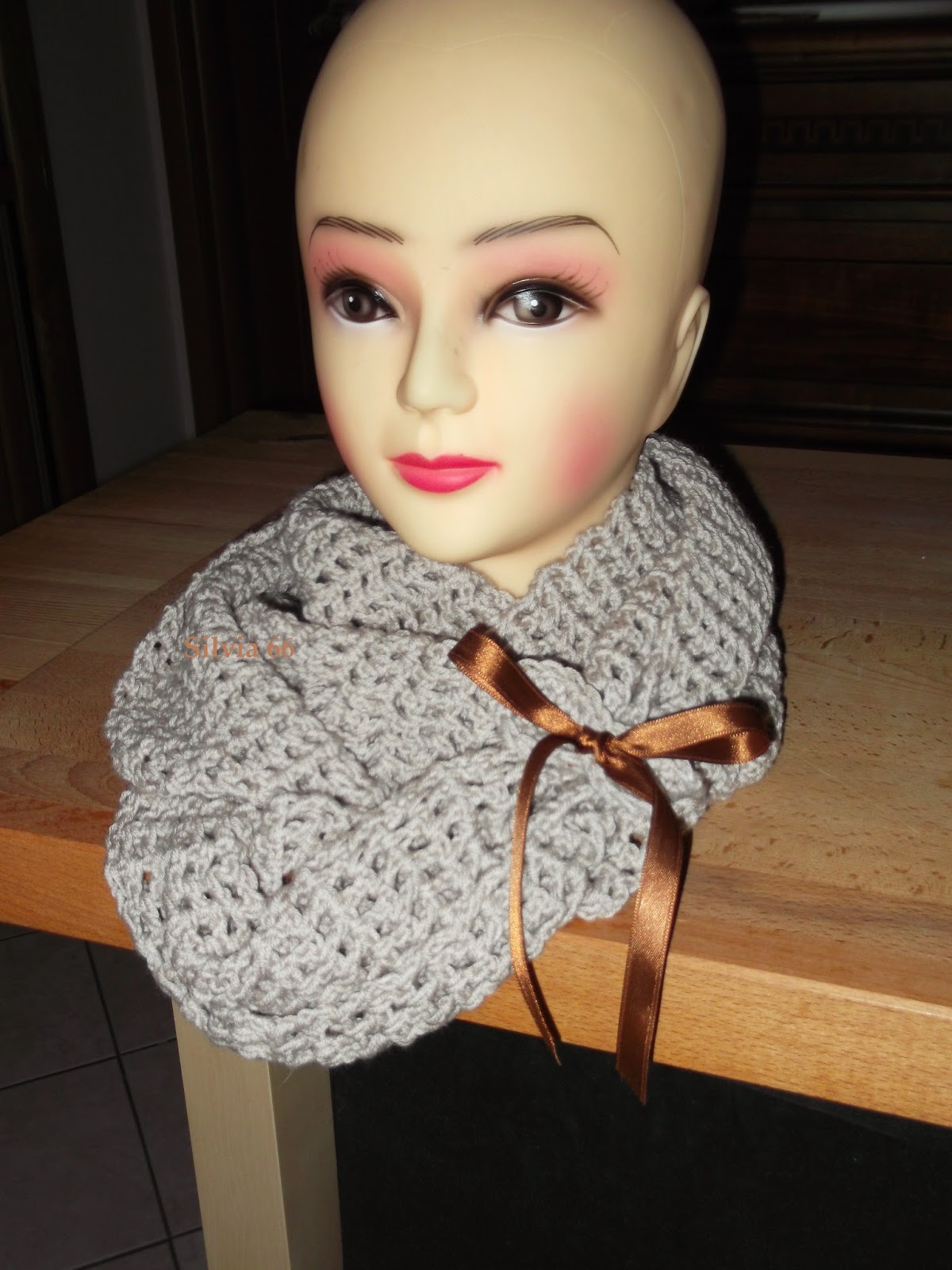 Ciao sempre abbinato con lo scialle potrebbe essere utile uno scalda-cuore molto facile da realizzare in fettuccia di cotone ne avevo fatto un'altro tempo fa dal tutorial Bolero Mariposa un simpatico, pratico facile tutorial su you tube.